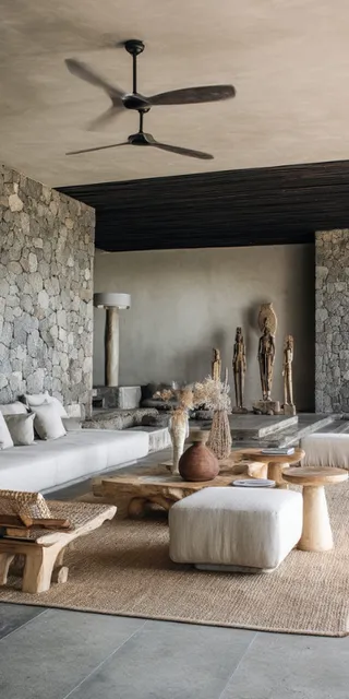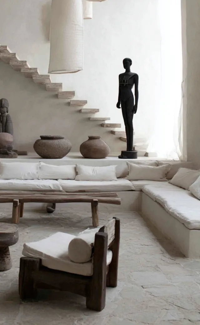 Si l’esthétique est contemporaine et minimaliste, elle n’est jamais froide. Elle s’enrichit d’éléments artisanaux et parfois ethniques, comme des pièces sculptées à la main, des objets chargés d’histoire ou des matières naturelles qui viennent réchauffer la rigueur de l’ensemble. C’est cette tension maîtrisée entre la structure et l’émotion qui crée des intérieurs vivants, habités.