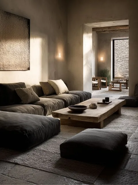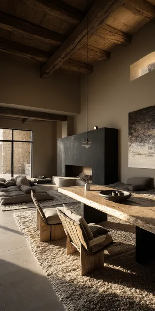 La matière brute est notre langage. Le béton, la pierre, le bois patiné ou les enduits minéraux deviennent des surfaces vivantes, sensibles aux variations de lumière et au passage du temps. Nous aimons la façon dont une texture peut tout dire : une rugosité, une patine, une imperfection racontent parfois bien plus qu’un objet spectaculaire.